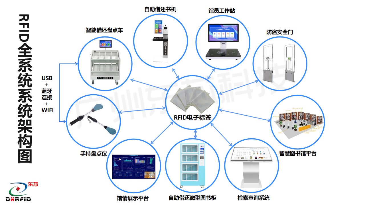 东芯科技智慧图书馆解决方案基于射频识别技术( RFID ),在物联网环境下,以云计算技术为基础,以智能化设备为手段,实现书书相联、书人相联、人人相联,打造智慧书联网、多馆互通、多元交互,提高图书、人员的管理效率、优化公共阅读资料的利用率,为用户提供智慧化服务。