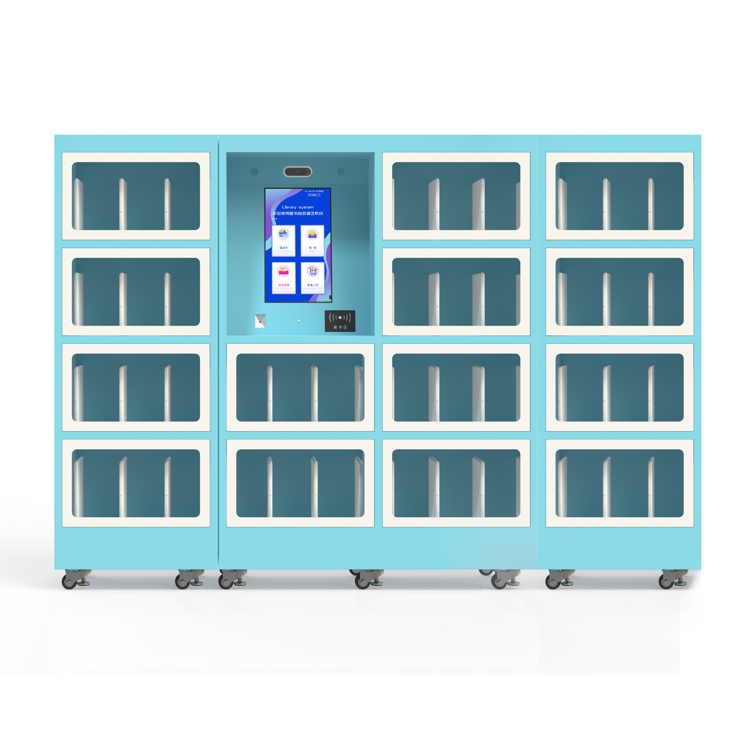 微型图书漂流柜是一种基于RFID技术的图书自助借阅延伸服务的终端设备。可实现24小时无人看守的共享的智能化设备,可自助借还书、自动数据记录分析、自助提醒等一体化管理服务功能。配备触摸显示屏或简单操作的人机交流界面、图形界面,通过协议或其他网络及专用接口与图书馆自动化系统数据相连接,由读者在图书柜中借阅书籍资料;实现多区域投放,增进图书流通速率、简化借还流程,便利读者快速准确的完成借还。主要应用于校园图书一角、商圈、事业单位、图书馆党群服务中习等多领域。