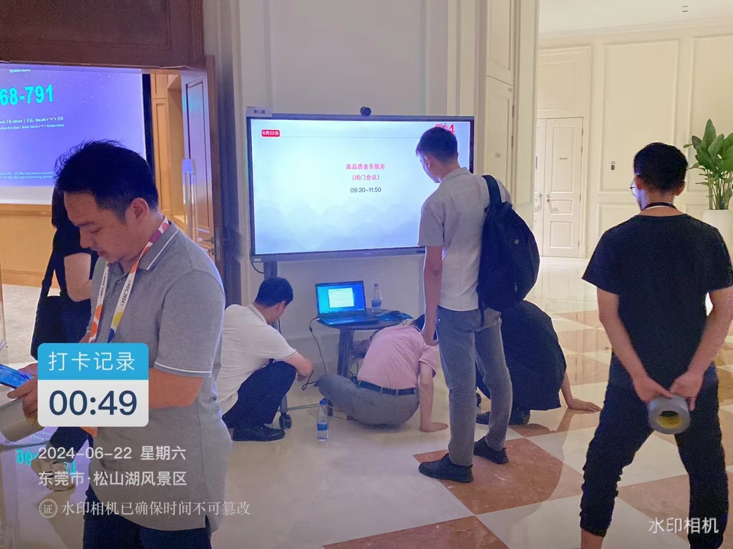 此次30套会议终端系统及60片智能通道,分布于园区8个大会场,近100场子分会,实时联动上传下载云端数据,我们顶住