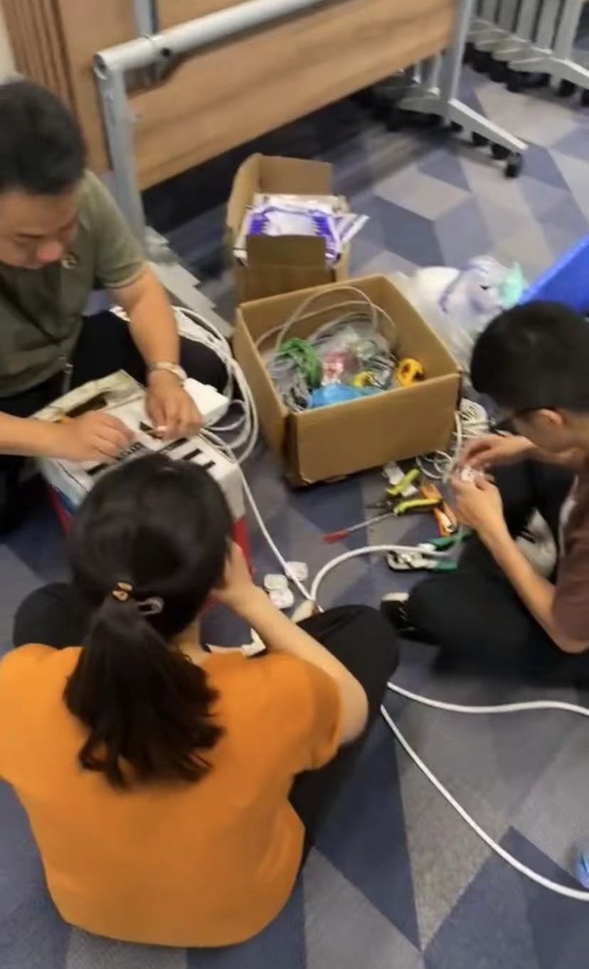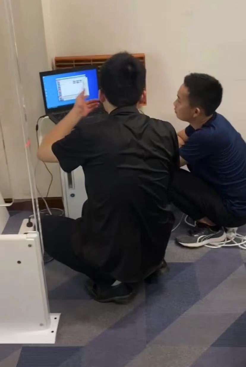 当成功将设备送达各个区之后,我们开始紧锣密鼓的拆包装,安装线路,测试软件等工作。东芯的同事们分工合作,齐心协力