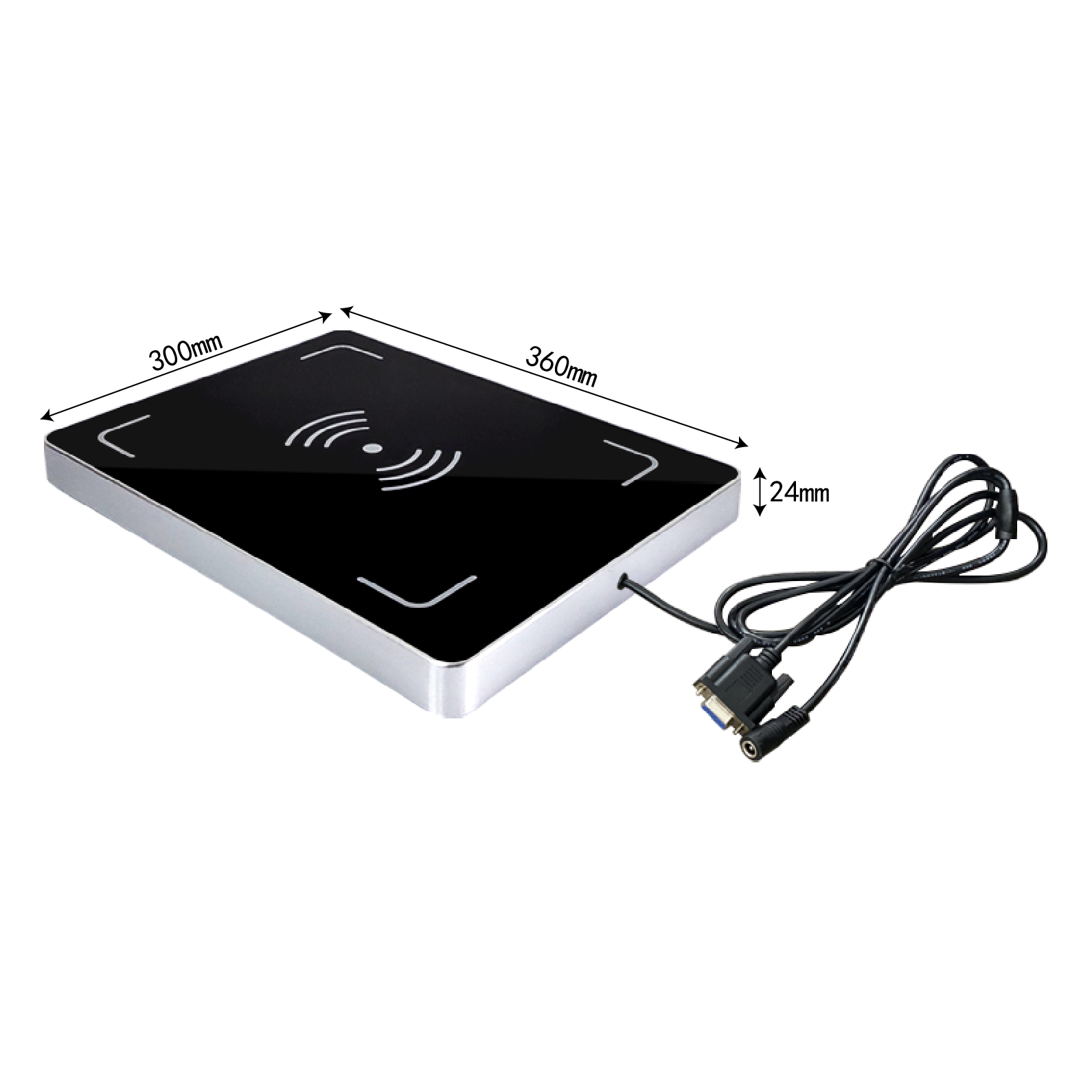 RFID超高频近场一体化读写器桌面批量盘点群读扫描ISO18000-6B\6C 可近场识别电子标签,不漏度,不串读,批量扫描读取50-100个超高频电子标签等,产品性能稳定,适用于对读写性能要求较高和应用场景较复杂的领域;具备RS232COM通信接口,内置R2000模块,近场感应范围1-50cm可调。可应用于身份识别、试剂盘点、珠宝盘点、仓储物流、智能餐盘、图书盘点、生产自动化管理等领域。